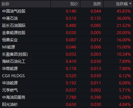 石油股多数上涨,中国油气控股涨45.83%、延长石油国际涨21.52%、中海油田服务涨5.28%、中国海洋石油涨3.83%、中国石油股份涨3.66。消息方面,美国总统拜登在回应媒体提问时承认,正与以色列讨论“袭击伊朗石油设施”的选项。