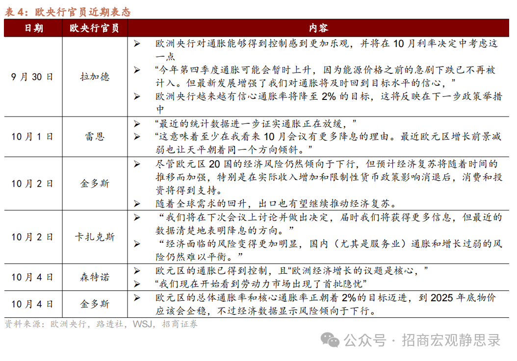 (二)欧央行:官员表态转鸽,10月降息存在可能