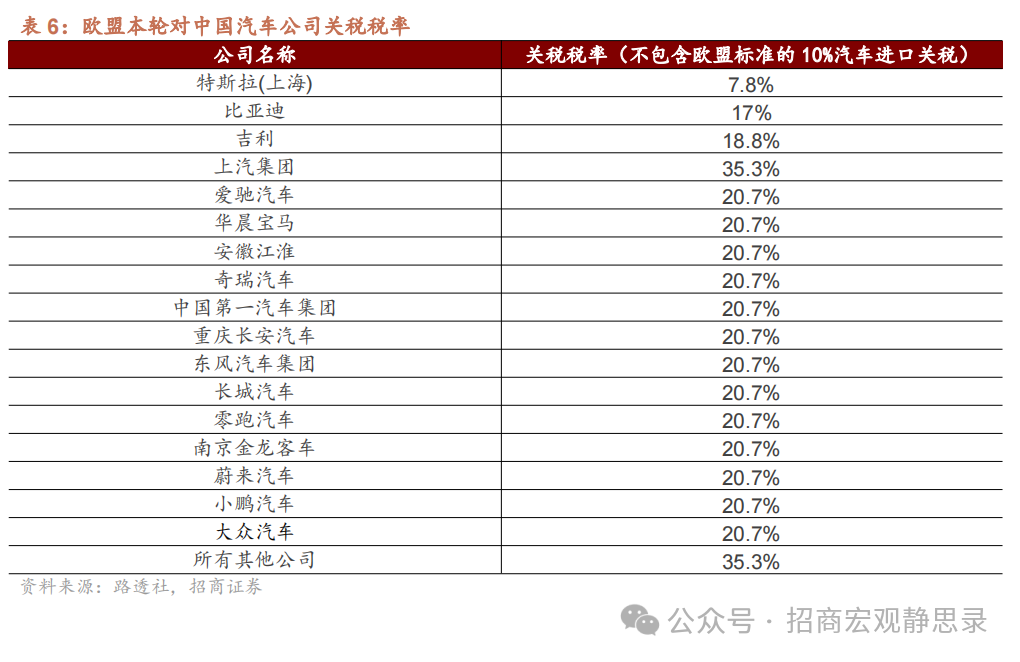 10月4日,欧盟在一份声明中表示:“欧盟委员会提出的对从中国进口的纯电动汽车(BEV)征收最终反补贴税的提议已获得欧盟成员国通过关税所需的必要支持[23]”,但同时将继续谈判“寻求替代解决方案”,该措施将于下个月开始实施,为期五年。包括法国和意大利在内的10个国家支持在原有10%的关税基础上加征最高35.3%的关税。德国和匈牙利等5国投了反对票,另有12个国家投了弃权票。[24]