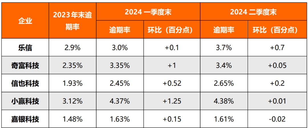 助贷平台中,2024年Q2奇富、乐信、信也、小赢、嘉银在内的五家企业90天 逾期率较2023年均在上涨。51信用卡前员工张强(化名)表示,目前消金行业风控水平高、一般的机构不良资产率分别为4%左右、7%以上,风控水平差的机构达到15%,甚至20%以上。