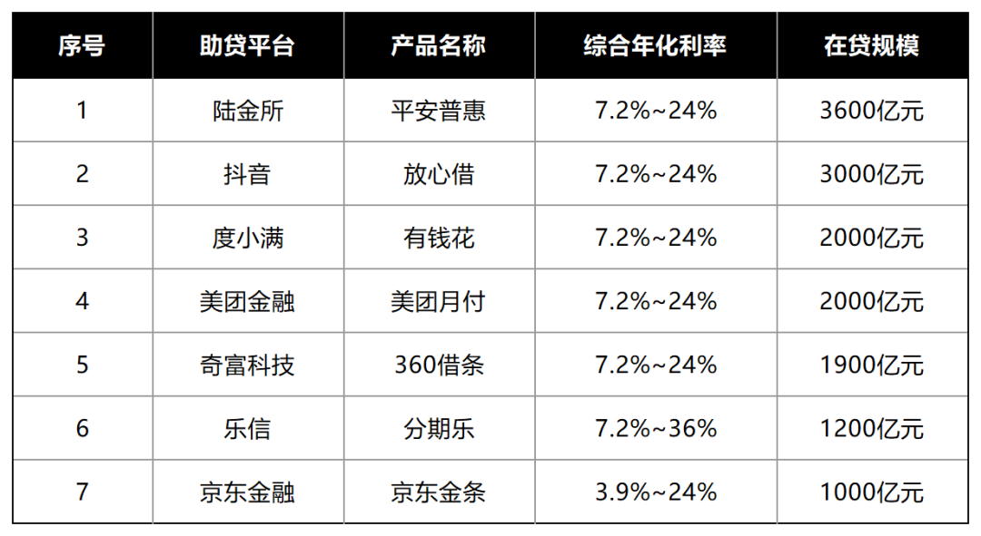 国内助贷机构历经多年洗牌和整合,已形成以陆金所、抖音、度小满、美团金融、奇富科技、乐信、京东金融为代表的第一梯队。其中,TOP3占据第一梯队整体规模58.5%,呈现一定寡头特征。
