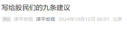 不过,值得注意的是,随着市场的持续波动,任泽平的态度也有所调整。12日凌晨,他在其官方账号上发表了一篇题为《写给股民们的九条建议》的文章。在文章中,他提醒股民要理性看待市场波动,尊重市场规律,不要被情绪左右。同时,他也给出了一系列投资建议,包括闲钱做投资、提升认知、量力而行、分散投资等。