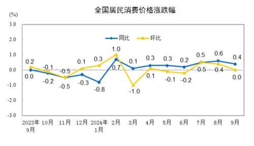 国家统计局最新公布:9月CPI同比上涨0.4%