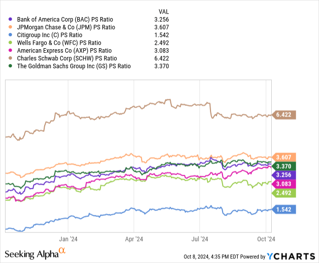 当然,如果美国银行的估值更高,分析师可能愿意将其股票评级为持有。然而,与其他大银行和贷款机构相比,美国银行现在受制于美国的经济事件,其估值设置相对“平均”。