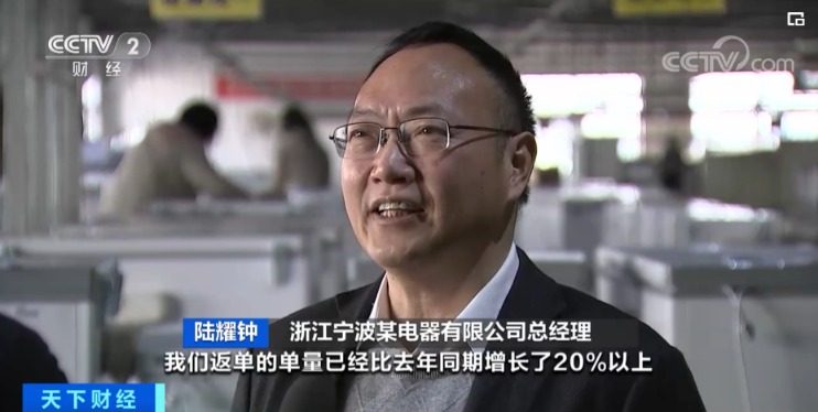 浙江宁波某电器有限公司总经理陆耀钟:今年前两个月,返单的单量已经比去年同期增长了20%以上,其中有老客户的返单,也有新客户的加盟,今年预计比去年同期能增长30%。