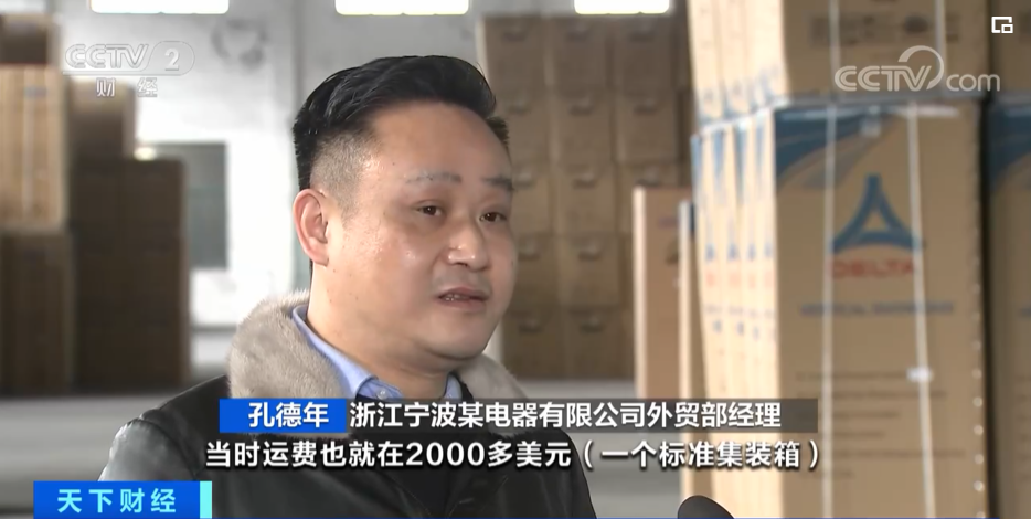 浙江宁波某电器有限公司外贸部经理孔德年:签订合同的时候,运费在2000多美元一个标准集装箱,等到货做好以后,猛涨到13000多美元。现在运费在2000美元左右,所以客户说可以出货了。