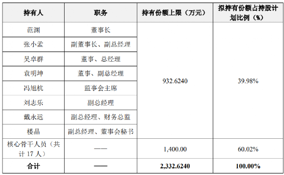 2月19日晚,安恒信息发布《2023年员工持股计划(草案)》。根据公告的草案,参加此次员工持股计划的人员范围为公司(含子公司)董事(不含独立董事)、监事、高级管理人员及核心骨干员工,共计25人,拟筹集资金总额上限为2332.624万元。
