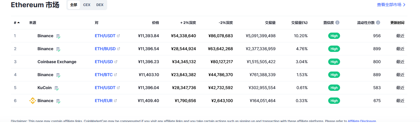 鉴于以太坊是仅次于比特币的第二大加密货币,因此可以购买以太坊,或在几乎所有主要加密货币交易所使用 ETH 交易对。一些最大的市场包括: