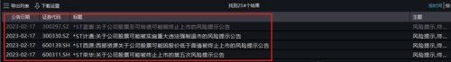 Wind显示,从1月份至今,A股公司已累计发布254份关于公司股票面临终止退市风险提示公告。