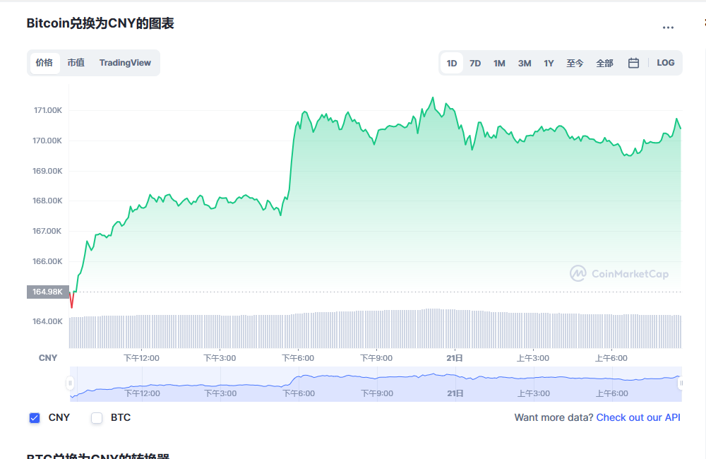 导读Bitcoin 今日价格 为 ¥170,440 CNY,其 24 小时的交易量为 ¥194,063,988,571 CNY。 我们会实时更新BTC兑换为CNY的价格。 Bitcoin 在过去 24 小时内增长了 2.68。 目前的 世链财经 排名为第 #1 位