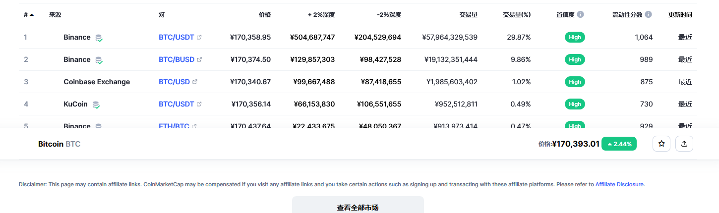 目前 Bitcoin 交易量最大的平台为 Binance, BTCEX, okX, Deepcoin, 和 。 您可以在我们的 查找其他上市资产。