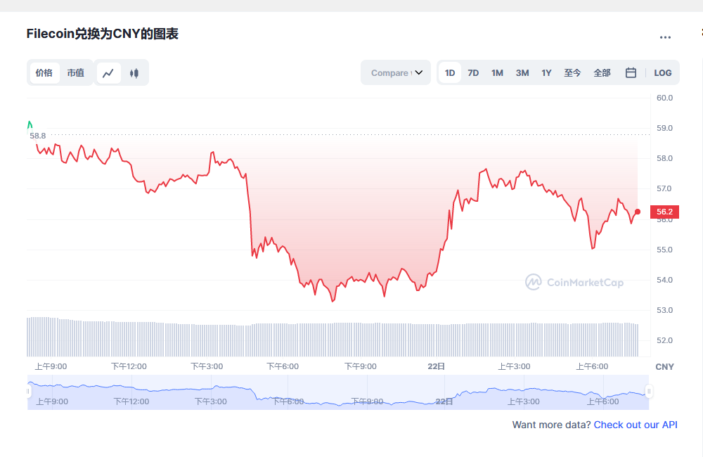 Filecoin 今日价格 为 ¥55.86 CNY,其 24 小时的交易量为 ¥5,258,445,517 CNY。 我们会实时更新FIL兑换为CNY的价格。 Filecoin 在过去 24 小时内下跌了 4.04。 目前的 世链财经 排名为第 #23 位,其市值为 ¥21,860,019,319 CNY。 其流通供给量为 391,333,999 FIL 个货币 目前无法提供供给量上限信息。