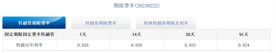 根据官网显示,转融资期限费率已经从此前的五档,改为四档。官网显示,目前,7天、14天、28天、91天的费率仍然维持去年试点
