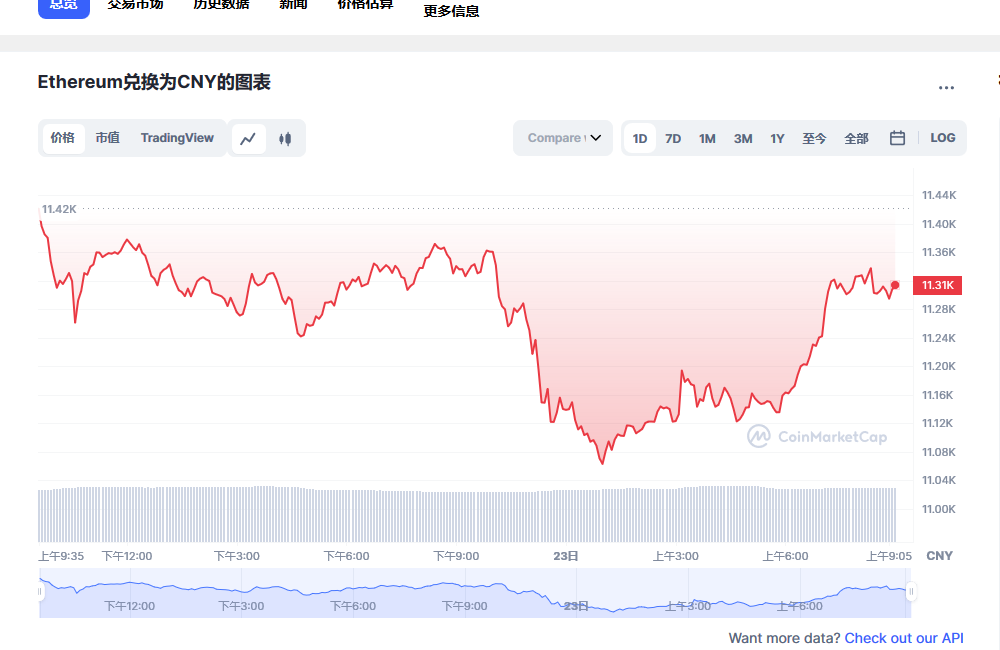 导读今日以太坊行情如何,1eth兑换兑换多少人民币RMB?Ethereum 今日价格 为 ¥11,310.04 CNY,其 24 小时的交易量为 ¥62,523,821,923 CNY。 我们会实时更新ETH兑换为CNY的价格。 Ethereum 在过去 24 小时内下跌了 1.07。 目前的 世链财经 排名为第 #2 位,其市值为 ¥1,384,053,469,797 CNY。 其流通供给量为 122,373,866 ETH 个货币 目前无法提供供给量上限信息。