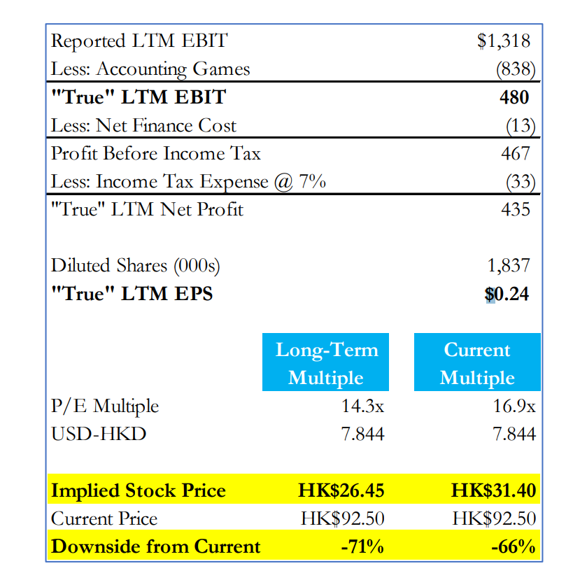 同时创科实业将价值数十亿美元的日常开支拨入各种资产账户中,令财务报表中部分成本被隐藏或推移到数年后。Jehoshaphat指出这些问题往往会在企业困难时期苏醒,因要在艰难期再隐藏的难度偏高。而当这些隐藏成本出现时,损益表将出现巨大变化,故相信创科实业的股价有60%至80%下行空间。