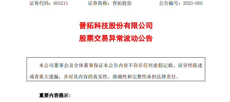 导读市场热点变幻,你方唱罢我登场。部分累积涨幅较大的毫米波雷达概念股,晋拓股份(603211)、中英科技(300936)、 越博动力(300742),已经开始披露股票交易异常波动公告提示风险。三