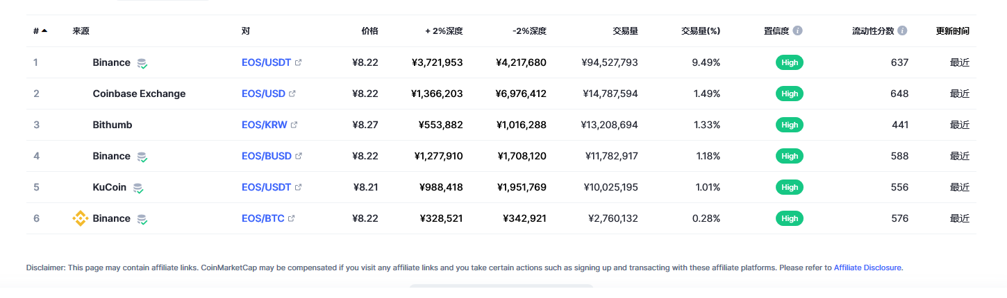 可以通过Binance、Coinbase、Kraken、Bithumb、Upbit和无数其他交易所购买EOS。考虑到它在加密行业中的广泛应用,你很难找到一个不支持它的交易平台
