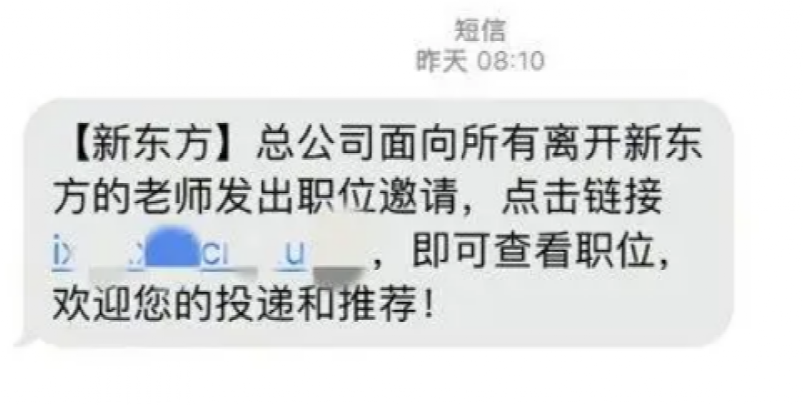去年8月,有多名网友在社交平台发文称,收到新东方总公司面向所有离开的老师发出的职位邀请。新东方招聘页面显示“好久不见,甚是想念,欢迎回家”,开放的岗位包括主播、高中全日制项目总监、销售运营经理、品牌公关,工作地点在北京。该招聘公告显示,未来会有更多岗位开放。