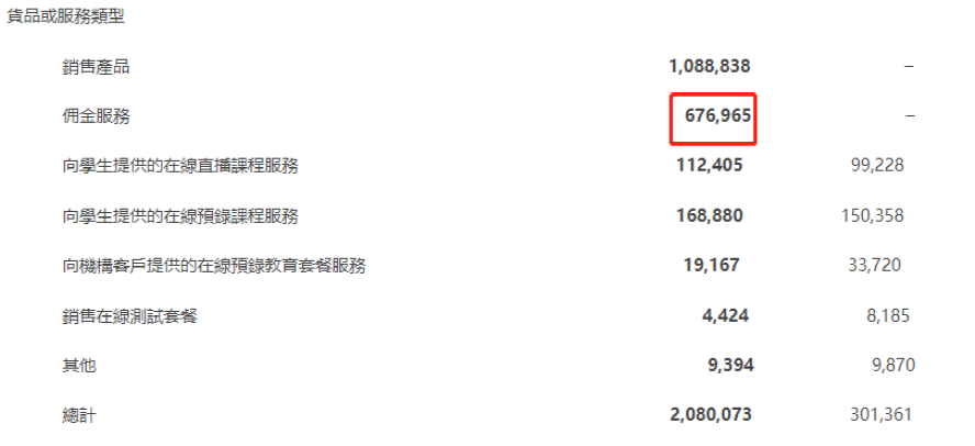 这份靓丽成绩单主要贡献力量正是直播电商和自营产品。公司半年卖货交易总额(GMV)达到48亿元,其中自营产品录得10.89亿元销售收入,第三方产品带货产生6.77亿元的佣金服务收入,两项收入合计17.66亿元,占到总营收的85%。传统的教育板块则贡献约2.95亿元收入,占比只有14%。