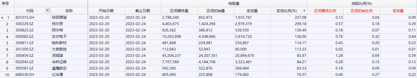 本周北向资金大比例加仓个股名单中,陕西黑猫、拓尔思、阿尔特等位列前三。