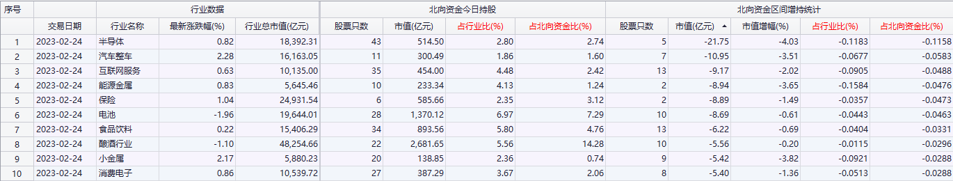 而本周半导体板块被北向资金净卖出最多,达到21.75亿元,汽车整车及互联网服务位列净卖出第二、第三位。