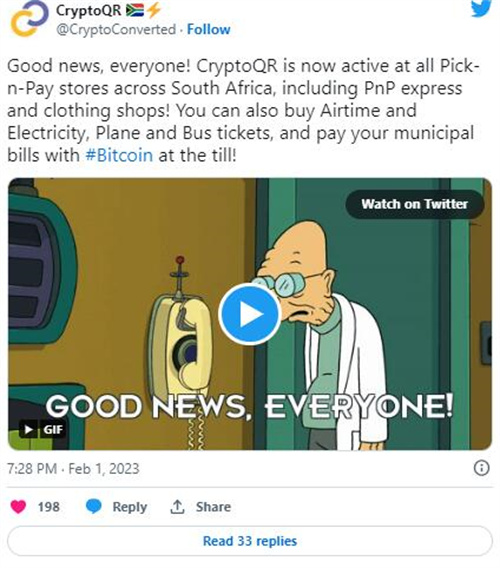 作为其全国推广的一部分,商店客户将能够通过智能手机应用程序或扫描二维码并在付款时接受南非兰特的兑换率来使用加密货币支付商品。