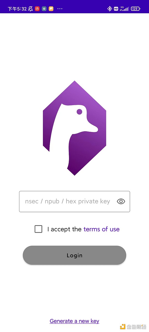 通过Nostr协议,个人用户生成了属于自己的公钥和私钥,可以把公钥看作是你的用户名或者银行账户,人们通过公钥找到你,把私钥看作是你的账户密码,在重新登录账户时,需要写入私钥,掌握了一个账户的私钥,便掌握了该账户。