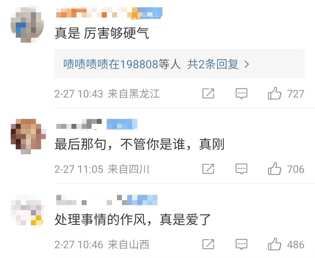 对于刘洪的回应,网友们纷纷评论:“我就喜欢这种执行力”“够硬气”等等。