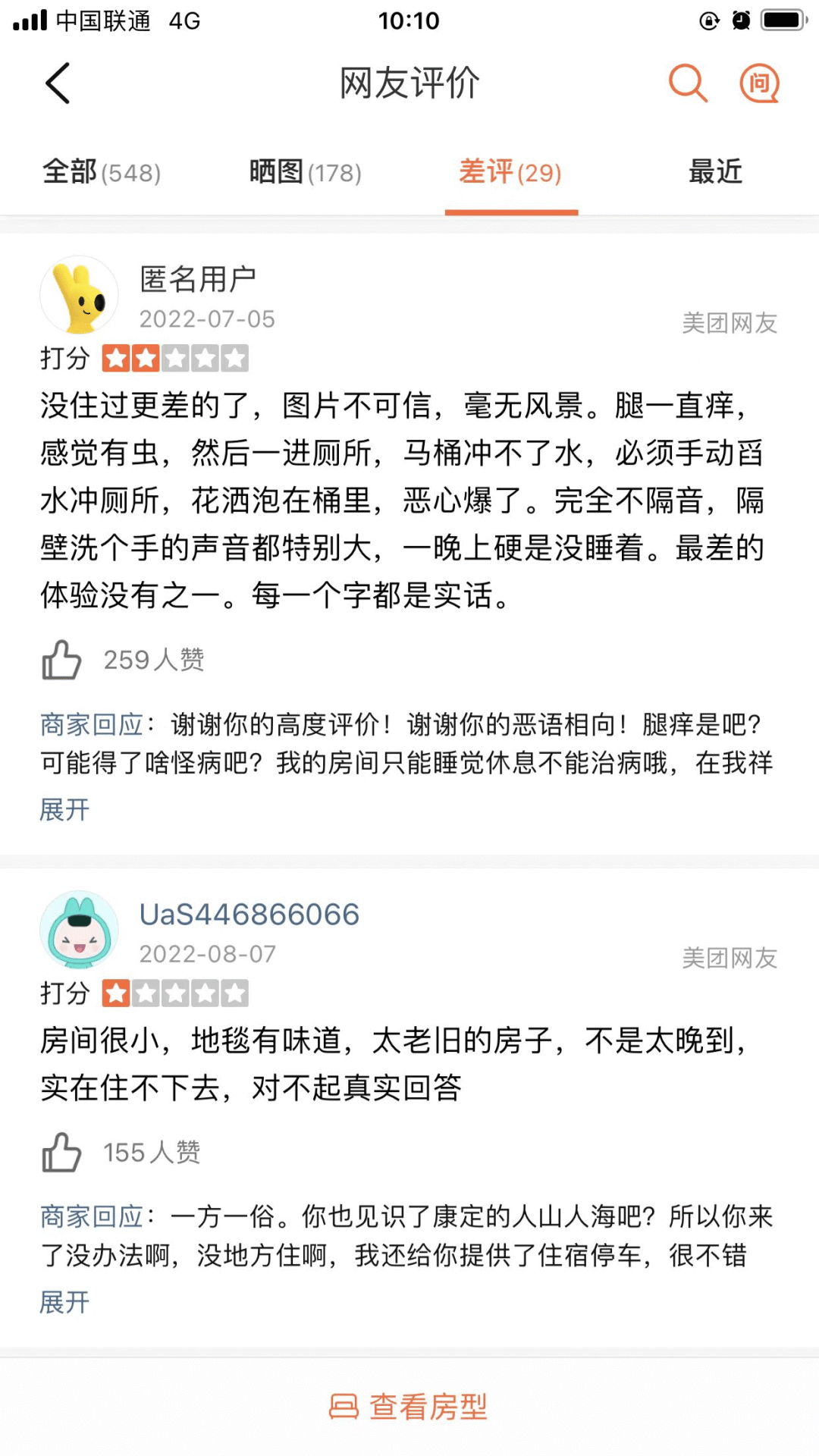 感到气愤的游客打算给予商家差评。点开评论区后他意外发现,该商家很喜欢辱骂给予差评的顾客。