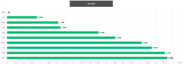 目前,美元指数已经完全收复了年内的所有跌幅,同时本月迄今兑其他所有G10货币全线走高。