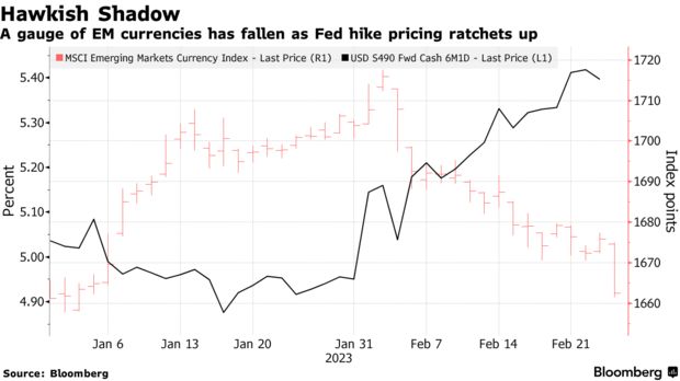 不仅汇市,对美国利率敏感的新兴市场股债的强劲反弹也正在失去动力。摩根大通新兴市场债券指数和MSCI新兴市场股票指数在本月早些时候双双创下了去年秋季以来最大的单周跌幅。目前,MSCI新兴市场股票指数在2月已累计下跌了约5.8%。