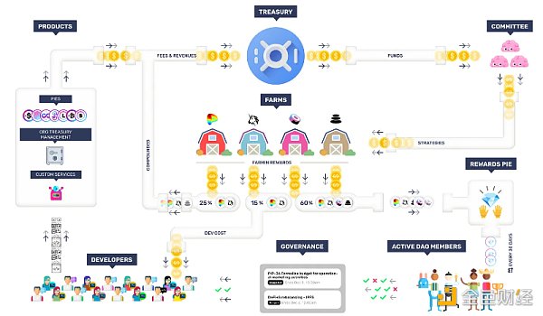 pieDAO 将其 60%的收入按比例重新分配给活跃的社区成员,即他们持有的 veDOUGH 数量。