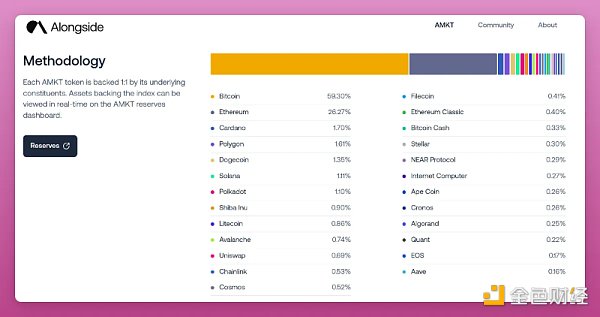 Alongside Crypto Market Index($AMKT)是一个中心化解决方案,其中包括一篮 25 个由市值加权的资产,以及资产由 Coinbase 托管。