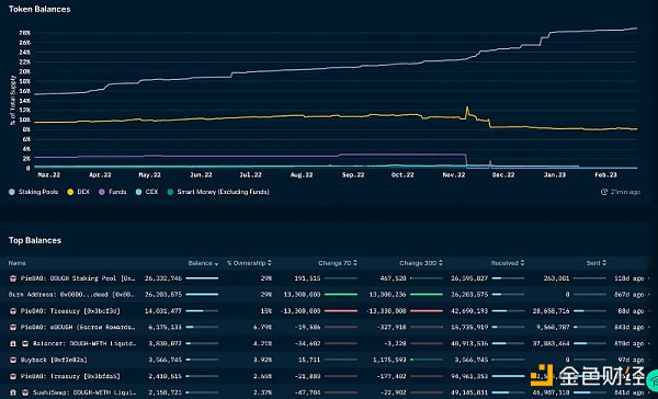 链上数据显示,目前聪明钱对其兴趣不大。29% 的供应被锁定在质押地址中。29% 的供应被销毁,4% 用于回购。
