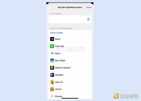 此外,搜索页面会实时展示所有用户最新发布的帖子,你可以回复、转发、点赞和分享。每一条贴文都有一个独特的 Note ID,复制之后同样可以在搜索页面输入直达。如果贴文内容有问题,你可以长按贴文向连接的中继器报告该帖涉及诈骗、裸体及非法内容,同时拉黑贴文的作者(在 Blocked 功能里可以找到并撤销)。作为比特币社区的产物,点对点支付系统必不可少,Damus 也内置了 Jack 最爱的比特币闪电网络功能,可以直接调用第三方闪电网络钱包支付。