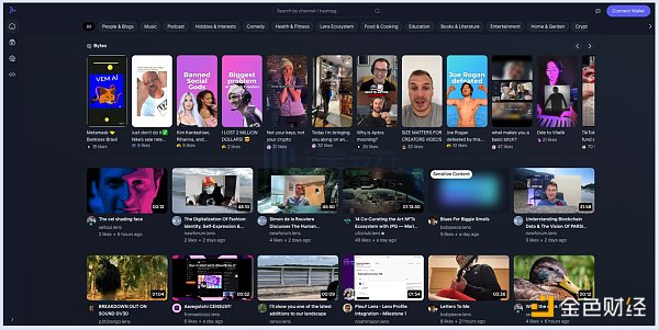 LensTube,LensTube 是一个去中心化视频共享平台,旨在成为 Web3.0 的 Youtube。LensTube 的视频内容存储在去中心化视频存储设施 Livepeer 上,用户可以基于图谱 NFT 与自己的粉丝分享和欣赏视频,并通过打赏、收藏等方式获得来自社区的奖励收益。