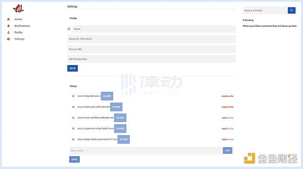 Branle,Branle 是使用 Quasar 制作的实验性 Web3 Twitter,和 Damus 一样,它是一个 Nostr 的客户端。目前 Branle 可以通过 Netlify Api 进行部署,如果用户想将其部署到自己的机器中,则必须通过其他方法来模拟自定义标题和头像代理功能。但该应用交互较为繁琐,类似更改用户名和 Bio 的操作均需要通过私钥逐一生成签名,效率非常低。