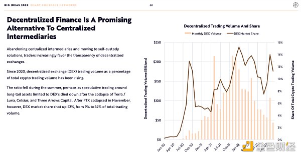 - 在FTX崩溃后,DeFi交易量相对于总的加密货币交易量增加了52%。