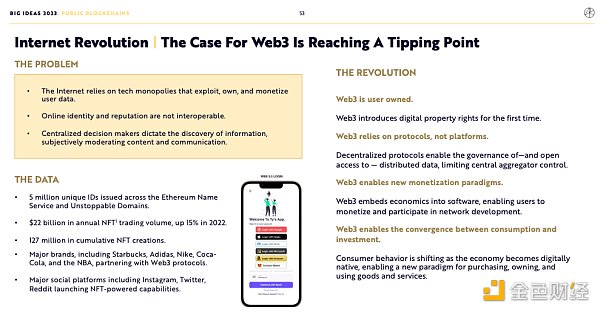 Web3是用户拥有的。Web3首次引入了数字产权。