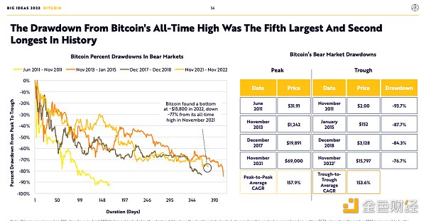 比特币的波动性掩盖了它的长期回报。尽管自2009年诞生以来,比特币有五次跌幅超过75%,但在3年、4年和5年的时间范围内,比特币的年化回报率为正。