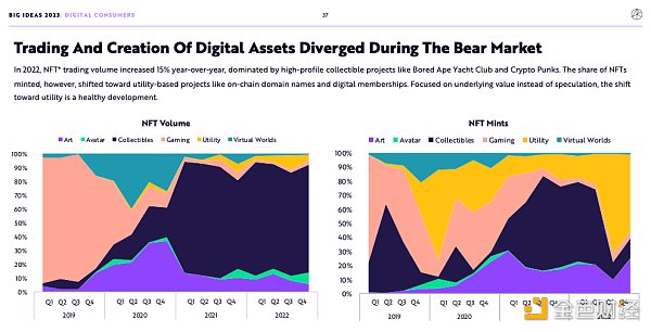 - NFT的年交易量为220亿美元,2022年增长15%。