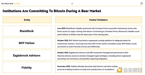 2022年10月:Eaglebrook Advisors和ARK Investment Management合作,为财务顾问提供主动管理的加密货币策略,包括直接的加密资产所有权,最低限度,以及投资组合报告的整合。