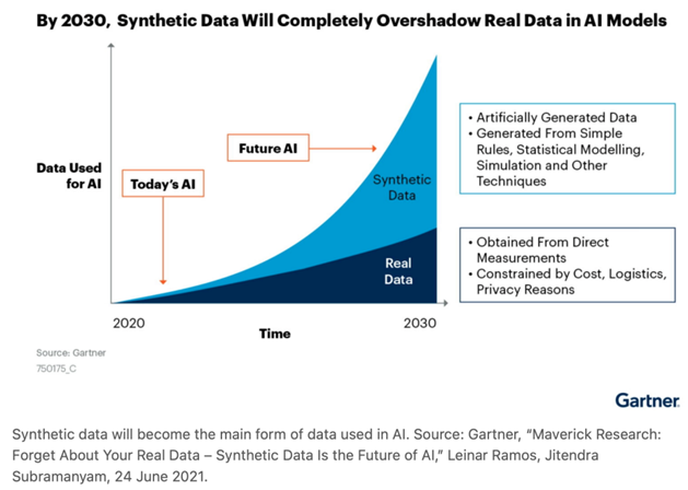 在产业互联网领域,基于AIGC技术的合成数据(synthetic data)迎来重大发展,合成数据将牵引人工智能的未来。MIT科技评论将AI合成数据列为2022年10大突破性技术之一;Gartner也预测称,到2030年合成数据将彻底取代真实数据,成为训练AI的主要数据来源。