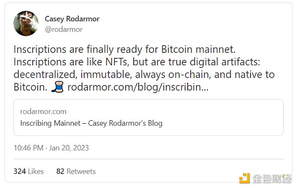 Ordinals 以一种新开发的比特币原生机制为中心,称为 Inscriptions。根据 Inscriptions 主网公告: