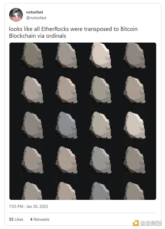 当然,也可以用不同的方式来铸造完全在链上的以太坊 NFT,尽管在以太坊链上铸造很贵。有趣的是,与以太坊链上 NFT 相比,Ordinals 提供的在比特币链上铸造 NFT 的方法成本更低。