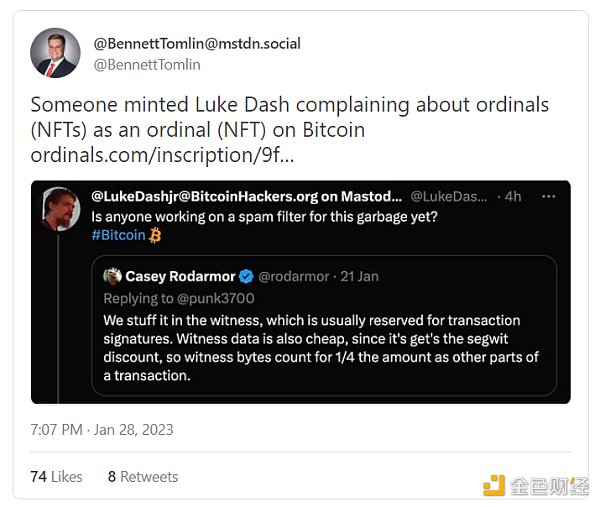 Ordinals 遭到了保守强硬派比特币拥护者的嘲笑,就像 2014 年他们嘲笑基于比特币的 Counterparty NFT 是垃圾信息一样。