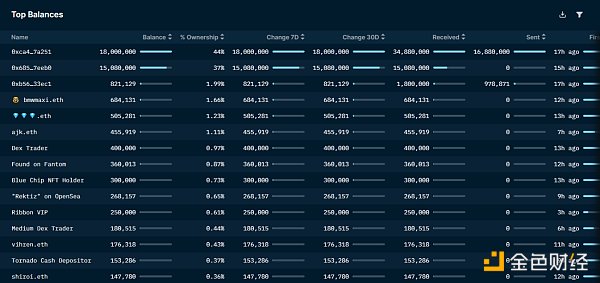 根据持有 SUDO 的头部地址数据,可以发现自昨天 SUDO 正式发布后,情况发生了相当大的变化,其中 yfimaxi.eth 现在是获得最多空投的个人用户(其他钱包看起来像项目团队 / 金库)。