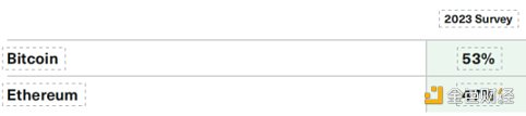 一个有趣的发现是顾问对兴趣的看法与看涨之间的差异。虽然顾问对比特币的兴趣 (41%) 大约是以太坊 (20%) 的两倍,但他们对这两个最大的加密资产的看好程度几乎平分秋色:53% 看好比特币,而 47% 看好以太坊。