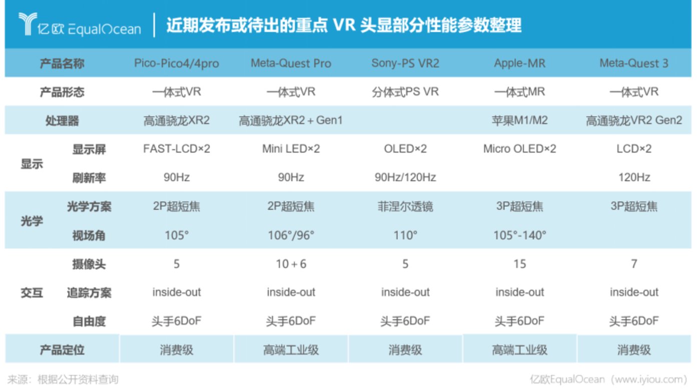 虽然技术突破面临困难,近一年发布的Meta Quest Pro、索尼 PSVR 2以及待出的苹果 MR 一体机均搭载眼动追踪功能,为眼动追踪的消费级落地揭开序幕。