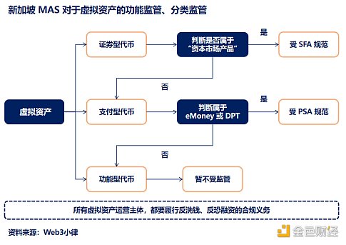新加坡金融管理局(Monetary Authority of Singapore, MAS)是新加坡的中央银行和综合金融监管机构,同时负责监管 Web3 行业。MAS 对虚拟资产采取功能监管、分类监管的思路,从而进行合法化的监管,但区别于货币。MAS 根据虚拟资产的功能和特征将其分为三类:(1)证券型代币(Security Token);(2)支付型代币(Payment Token);(3)功能型代币(Utility Token)。